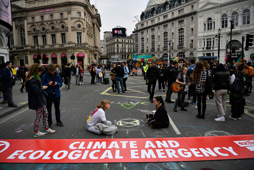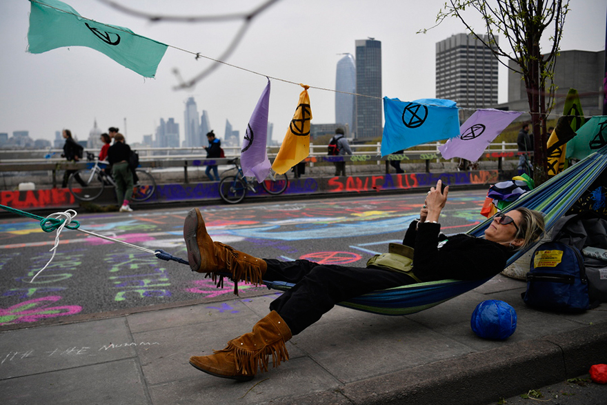 Οι διαδηλώσεις, τις οποίες οργανώνει η ομάδα ακτιβιστών Extinction Rebellion, είχαν ως αποτέλεσμα να προκληθούν και σήμερα μεγάλα μποτιλιαρίσματα στην πόλη. Η ομάδα ζητά από την κυβέρνηση να μειώσει στο 0 τις εκπομπές αερίων που προκαλούν το φαινόμενο του θερμοκηπίου μέχρι το 2025. Στις αρχές του μήνα μέλη της οργάνωσαν μια "ημίγυμνη" διαμαρτυρία μέσα στη Βουλή των Κοινοτήτων.