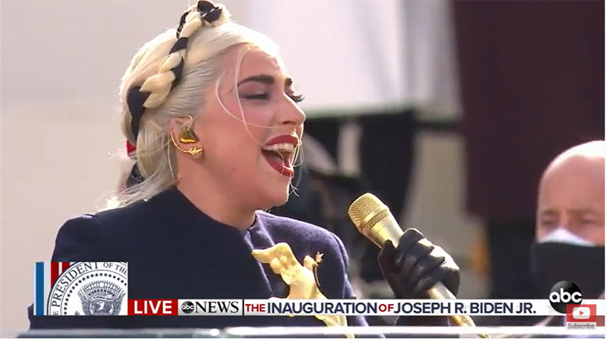 18.36 H Lady Gaga τραγούδησε τον εθνικό ύμνο στην ορκωμοσία Μπάιντεν.