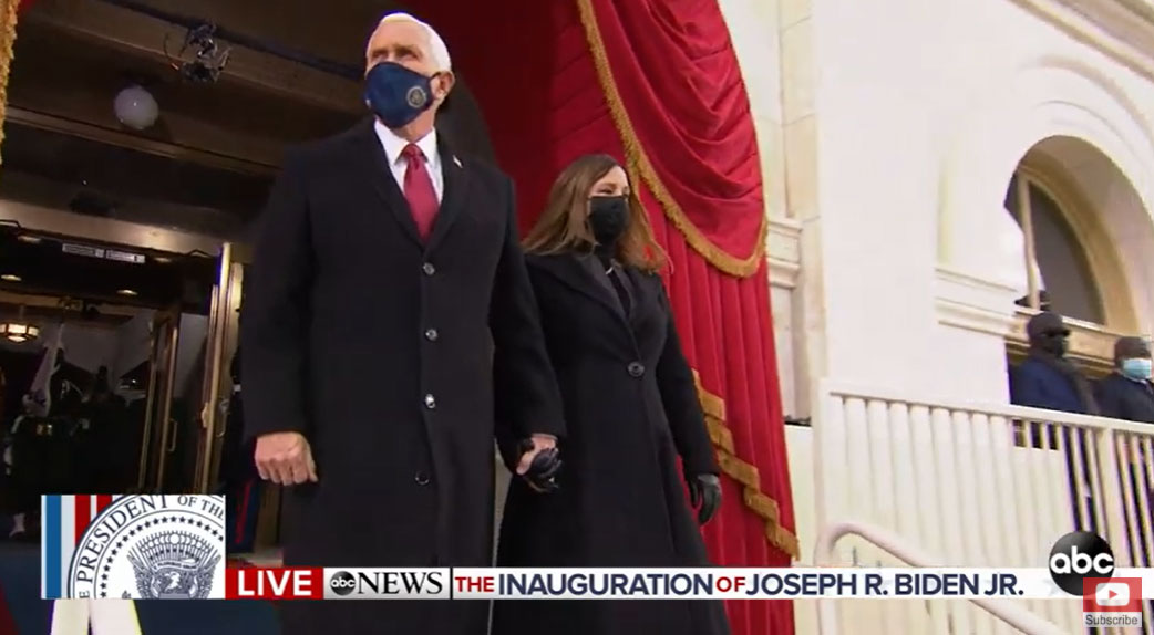 18.03 Ο Μάικ Πένς και η σύζυγός του, Κάρεν, έφθασαν στον χώρο όπου γίνεται η τελετή ορκωμοσίας του Τζο Μπάιντεν.