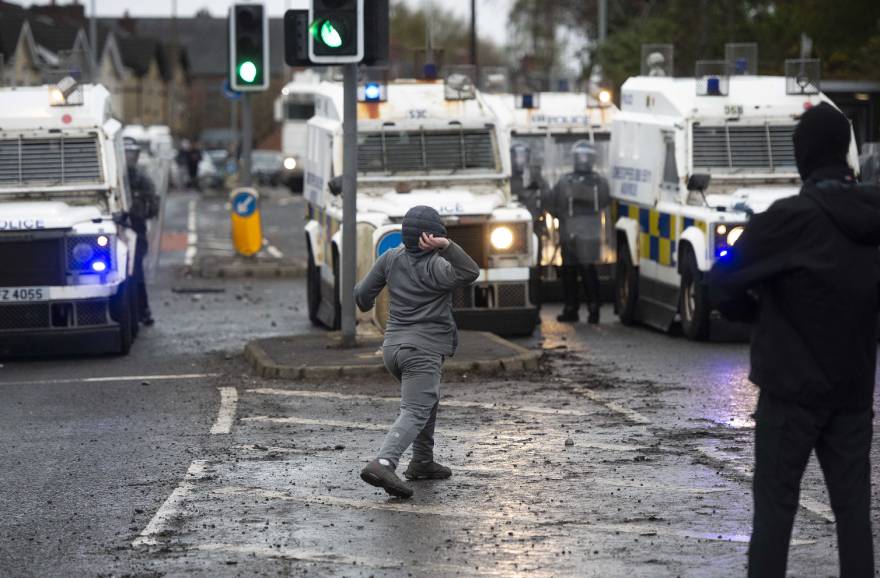 Συνεχίζονται για δεύτερη εβδομάδα οι ταραχές στους δρόμους πέντε πόλεων της Βόρειας Ιρλανδίας, με πρόσχημα τις συνέπειες του Brexit στη Βόρεια Ιρλανδία. Αυτοκίνητα και λεωφορεία κάηκαν, ενώ τουλάχιστον 74 αστυνομικοί τραυματίστηκαν από βόμβες βενζίνης. Η πρόσφατη ανάφλεξη άρχισε στις 29 Μαρτίου, όταν αστυνομικοί δέχτηκαν επίθεση σε μια βόμβα βενζίνης στην περιοχή Tullymore, στο Derry/Londonderry όπου κατοικούν κυρίως προτεστάντες φιλο-βρετανοί. Παρόμοιες σκηνές σημειώθηκαν αργότερα σε ολόκληρη την πόλη, ενώ τις επόμενες μέρες οι ταραχές επεκτάθηκαν στο νότιο Μπέλφαστ, όπου σε θύλακα Καθολικών της περιοχής Sandy Row, 15 αστυνομικοί τραυματίστηκαν από τούβλα, μεταλλικές ράβδους, κροτίδες και καλύμματα φρεατίων τα οποία εκσφενδόνιζε εναντίον τους το πλήθος. Οι περισσότεροι από τους συμμετέχοντες των ταραχών είναι νέοι, μερικοί μάλιστα δεν φαίνονται πάνω από 12 ετών. Σε ορισμένα βίντεο που κυκλοφορούν στα μέσα κοινωνικής δικτύωσης, ενήλικες ωθούν παιδιά να κάνουν τις βίαιες πράξεις, ενισχύοντας την υποψία ότι τη βία ενορχηστρώνουν οι παραστρατιωτικές ομάδες.