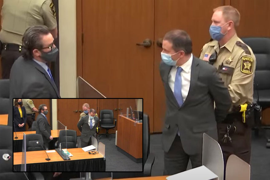 Μετά την ανακοίνωση της ετυμηγορίας αστυνομικός πέρασε χειροπέδες στον Ντέρεκ Σόβιν και τον οδήγησαν εκτός της δικαστικής αίθουσας. Το συγκεκριμένο βίντεο κάνει τον γύρο των social media.