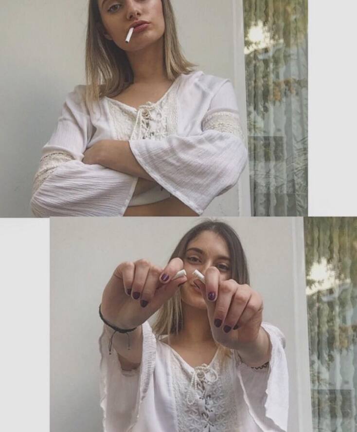 Επίλογος. Είμαι η Αθηνά με στήθος Α και κενό στα δόντια, και σε καλώ σήμερα να κάνουμε το τελευταίο μας τσιγάρο. Και εσένα που δεν κάπνισες ποτέ αλλά σκέφτηκες έστω και για 1 δευτερόλεπτο να κάνεις μια τράκα, να μην την κάνεις ποτέ. Σε καλώ να μην κάνουμε τα λάθη των γονιών μας που δεν ήξεραν τις επιπτώσεις. Σε καλώ να ξυπνάμε το πρωί χωρίς να βήχουμε σαν βουλκανιζατέρ. Σε καλώ να έχουμε το πιο λαμπερό χαμόγελο. Σε καλώ να πετάξουμε τη μόδα της εποχής στα σκουπίδια και να πιάσουμε από τον κάδο τη σακούλα που φυλάει την υγεία μας.